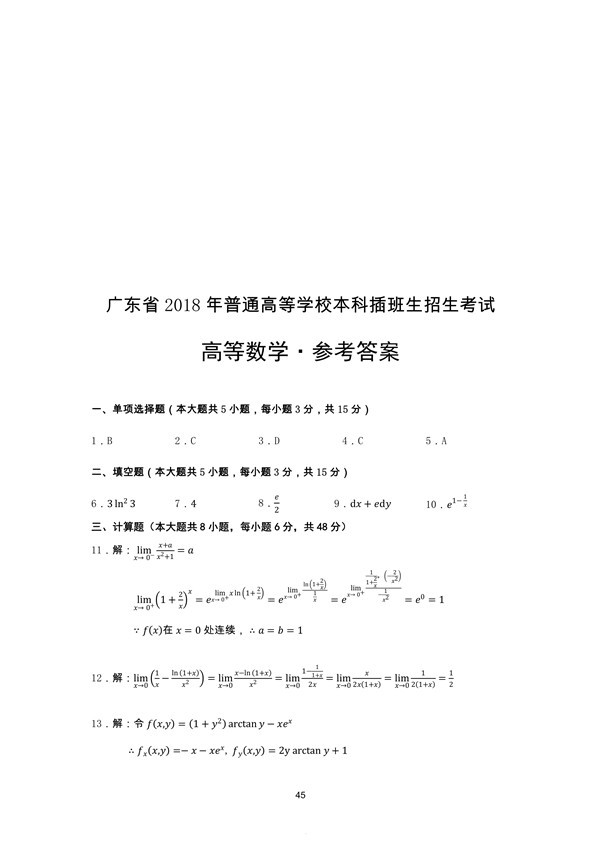 广东省2018年专插本招生考试高等数学真题及答案!专插本高等数学是广东专插本较难的科目,需要多做练习巩固,下面是广东省2018年专插本招生考试高等数学真题及答案,同学们记得做完再对答案哦!
