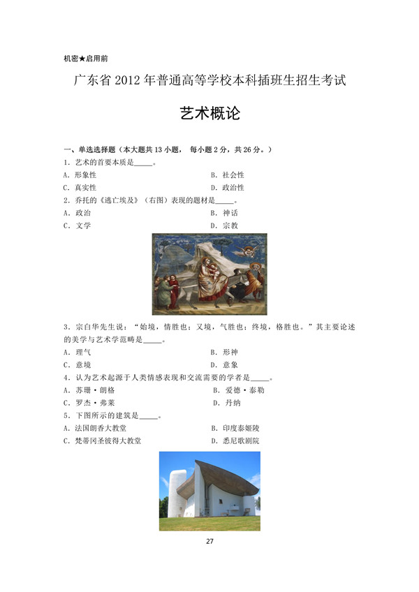 2012年广东专插本考试艺术概论真题及答案!艺术概论是广东专插本艺术类专业必考科目,下面是2012年广东专插本考试艺术概论真题,同学们记得按规定时间测试下!